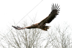 上クチバシの一部と4本の指を失いながらも、全身に負った大やけどを克服したオジロワシの成鳥。力強く羽ばたく姿は、生命の逞しさを感じさせます。左右2本ずつ残った足爪を駆使し、生きた魚も生け簀から自分で捕獲することが出来るようになりました。