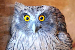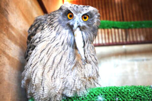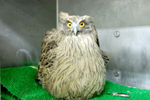 入院中のシマフクロウの状態は、日に日に良くなって行ったものの、人が差し出す魚しか食べようとしません。脳への後遺症も心配されましたが、小さな生け簀にマスを泳がせて採餌を促してみたところ、数日後にようやく自ら魚を狙う行動が確認されました。フライングケージで本格的なリハビリを開始できるようになるまでには、まだしばらく時間がかかりそうです。