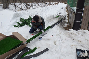 フライングケージ内の修繕作業